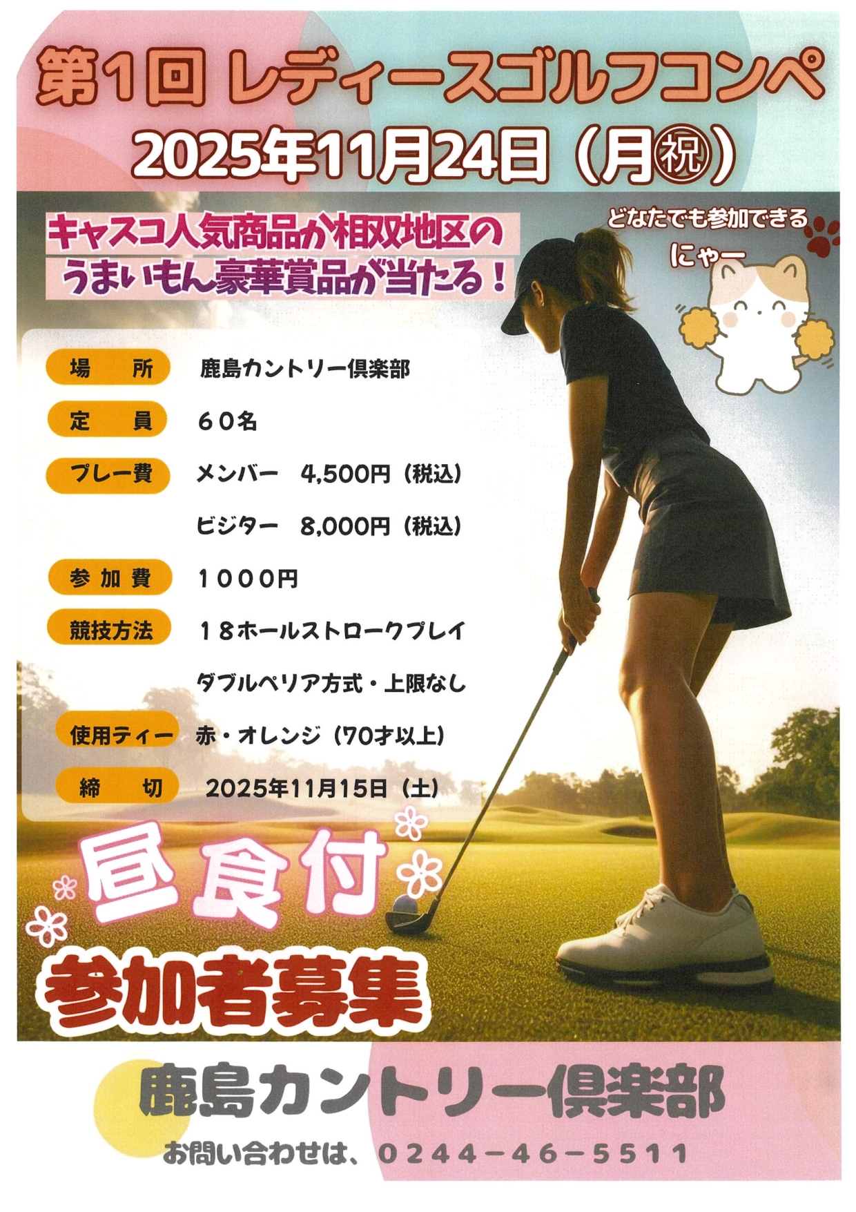 第1回 レディースゴルフコンペ開催!(昼食付)