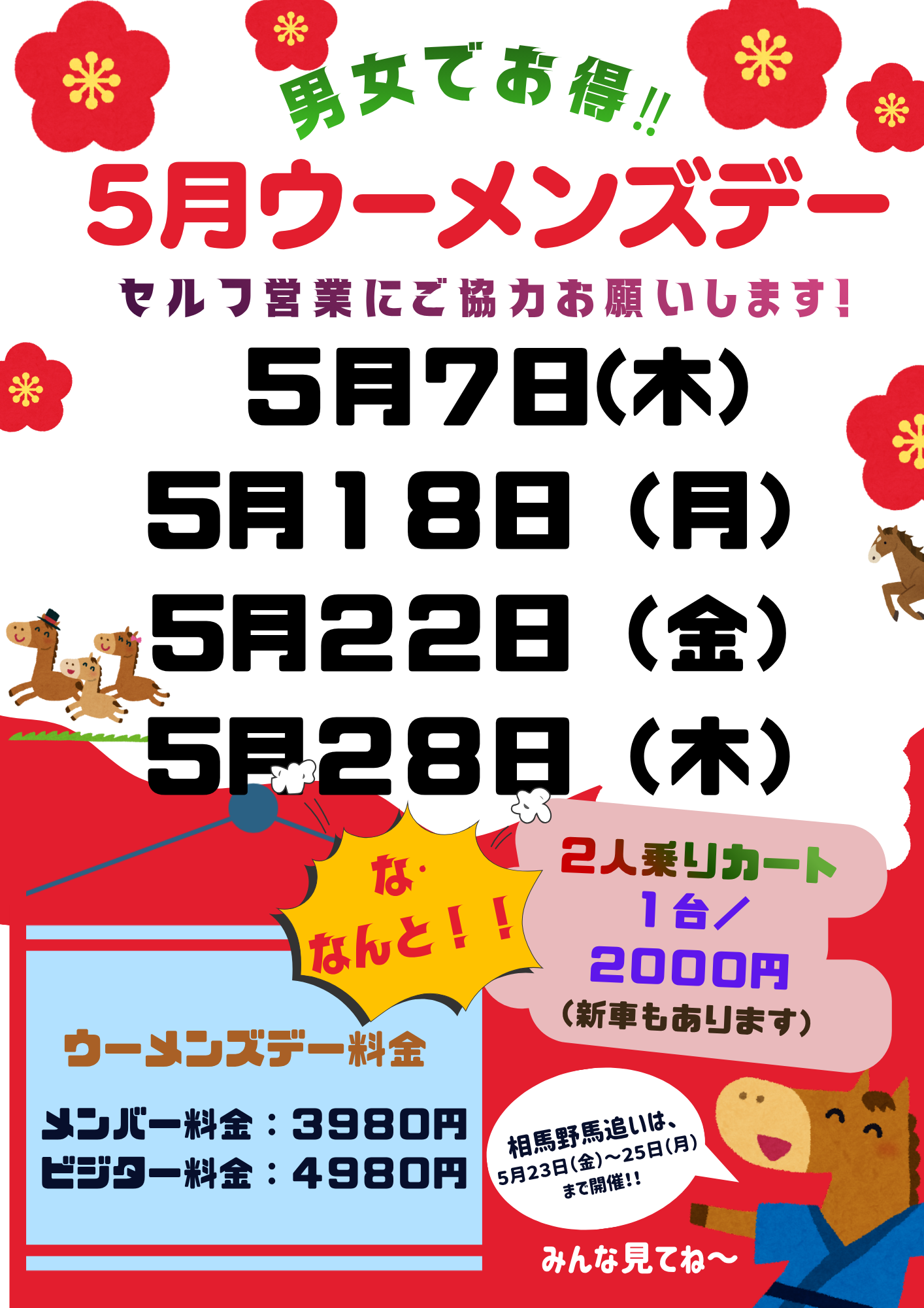 ウーメンズデー限定FW乗入カートが、1台/2000円でご利用出来ます!