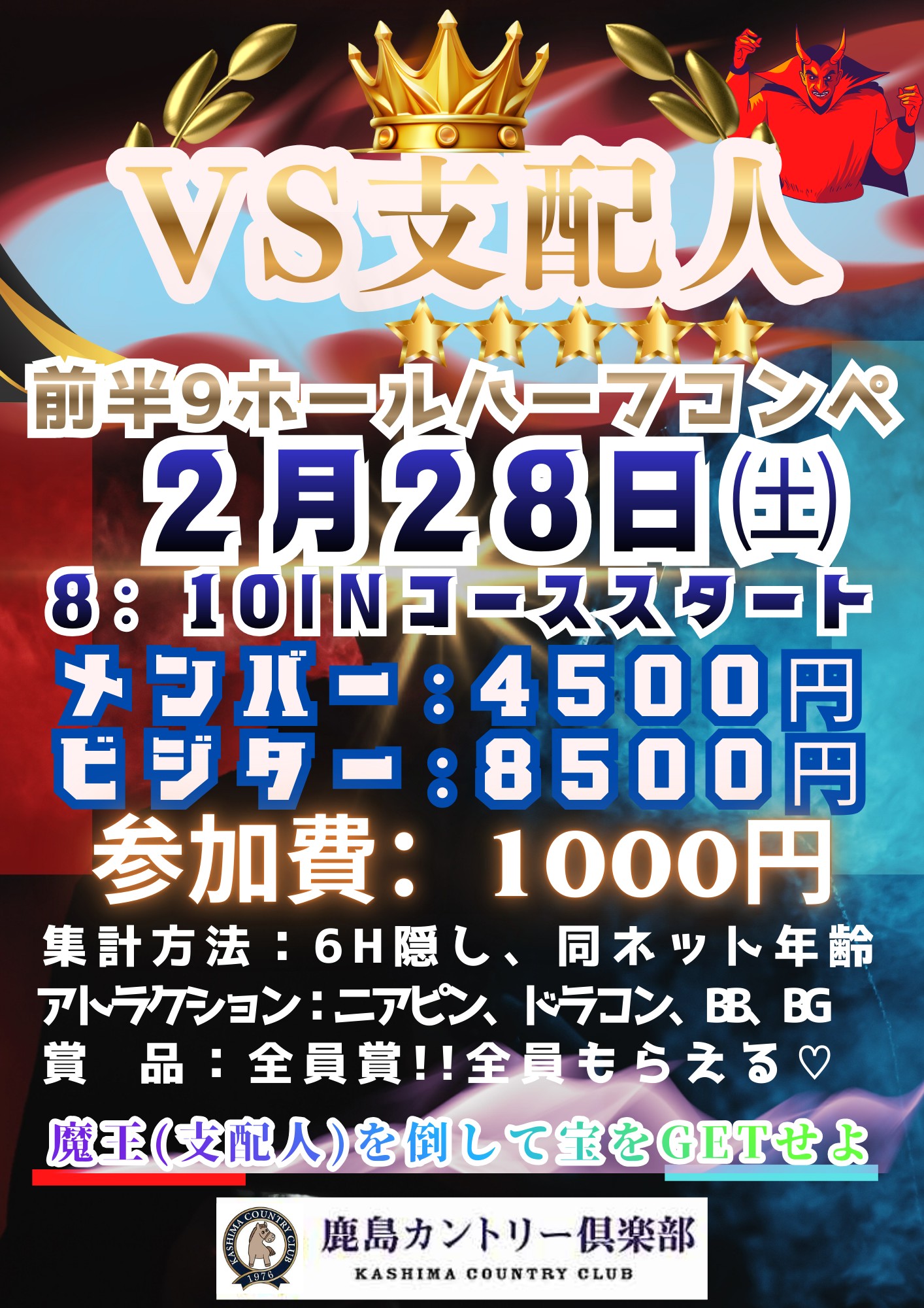 魔王(支配人)にネットで勝利した方には、平日無料プレー券!